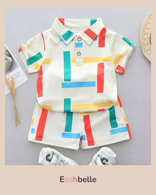 Baby Boy Colorful Stripe Collar Short Sleeve Shirt & Shorts Set